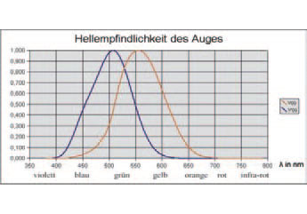 Jahrzehntelang glaubte man, dass die einzigen Rezeptoren im Auge die des visuellen Sehens wären. Das menschliche Auge hat ein visuelles Wirkspektrum von 380nm bis 780nm. Die Rezeptoren für das Sehen sind Zapfen und Stäbchen. Die Zapfen reagieren auf die Farben rot, grün und blau, also das Tagsehen, die Stäbchen haben nur ein Hell Dunkel Empfinden für das Nachtsehen. Das Auge hat ihre empfindlichste Reizung am Tage (photopisch) bei 555nm und in der Nacht (Skotopisch) bei 505nm.